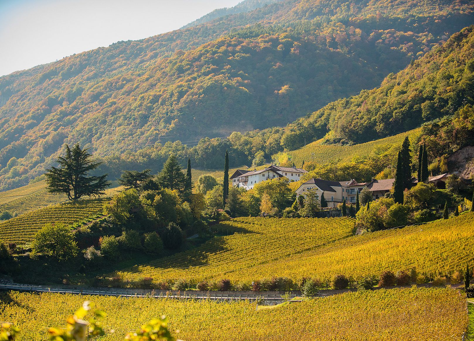 Angrenzend an den Kolbenhof liegt ein stark nach Süden ausgerichteter, extrem steiler Weinberg, südtirolerisch „Leiten“ genannt. Dieser Hang fällt in die tiefe Schlucht des Höllentals ab und ist einem ganz besonderen Mikroklima ausgesetzt. Dank anhaltender kühler Fallwinde vom Hausberg Roen reifen die Trauben langsam und werden erst im November von Hand gelesen. Sie sind dann überreif und besonders aromatisch – ideal für die Gewürztraminer Spätlese Vigna Rechtenthaler Schlossleiten.