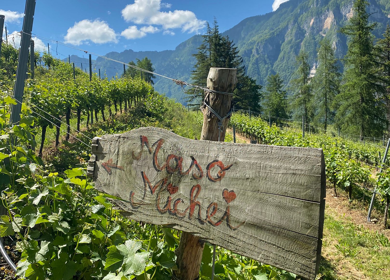 Zum Maso Michei geht es hoch hinauf in eine abgeschiedene Bergwelt im südlichen Trentino. Dort gedeihen die Reben bis auf 850 Höhenmeter an einem sonnengetränkten Südhang in ursprünglicher Natur. In dieser, für den Weinbau bemerkenswerten Lage, wächst die Rebe langsam und reift die Traube spät. Sie bringt frische, fruchtige und langlebige Weine hervor: Michei di Michei Müller Thurgau mit seiner feinen Aromatik und Michei di Michei Blauburgunder mit seiner ausgeprägten Mineralität. Ergänzt werden diese Weine mit einem „Trento DOC“ Schaumwein aus den Sorten Chardonnay und Blauburgunder.